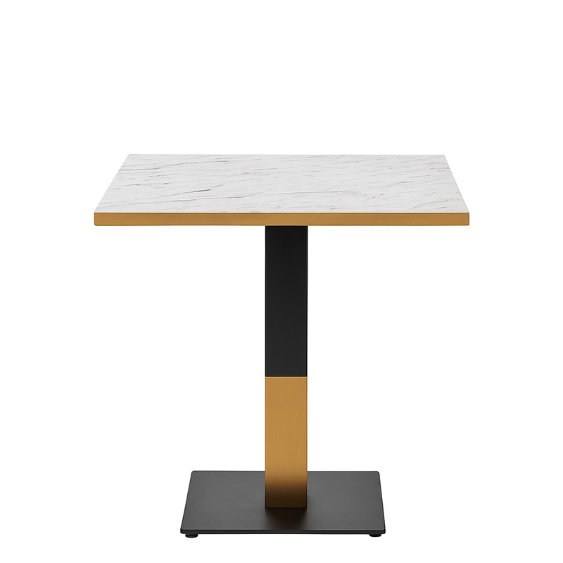 Luxury White Carrara Marble Square Dining Table – Durable Black & Gold Base for Hospitality – 3 Top Sizes