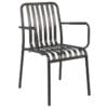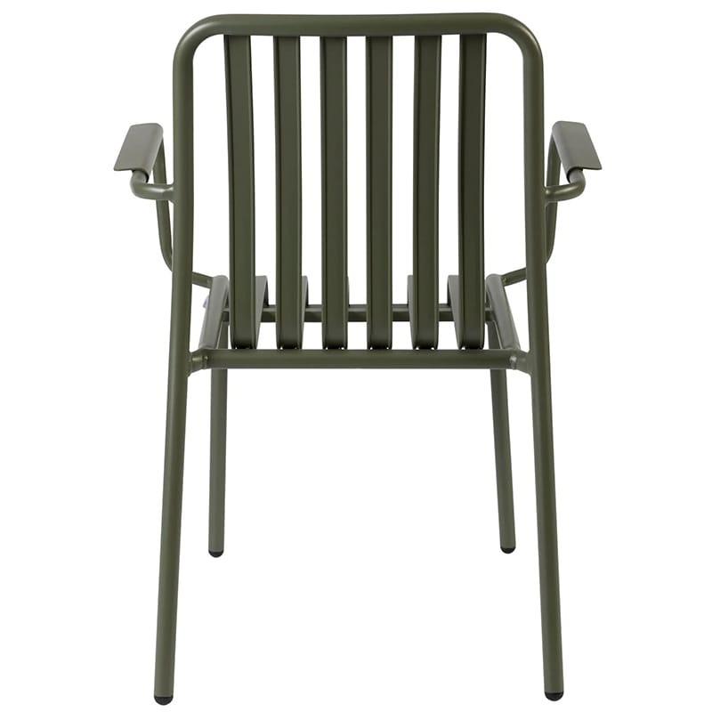 combines contemporary designer styling with durable, commercial‑grade performance. Its rust‑proof, lightweight, powder‑coated aluminium frame ensures excellent weather resistance and minimal maintenance. A sleek slatted profile and ergonomically shaped seat deliver comfort as well as visual appeal.