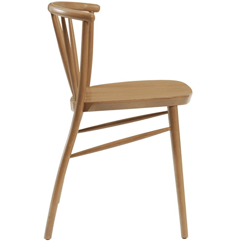 A timeless classic crafted from beech and inspired by the elegance of Scandinavian design. Designed with a subtle bentwood style and spindle back detailing, this piece is perfect for adding a touch of luxurious style to your venue. Each spindle back has two beautiful finishes, and an armchair counterpart is also available, allowing you to create an ambiance of sophistication throughout your living space. Every Astrid Scandi Style Spindle Back Side Chair features stunning, curved back leg details, providing superior support, whilst floor protectors are fitted to preserve delicate flooring. Thanks to its solid beech frame and bracing details between legs, each chair offers outstanding strength and stability, and is suitable for indoor use only. Add a timeless, classic touch of luxury to your restaurant, hotel or dining area with the Astrid Scandi Style Spindle Back Side Chair.