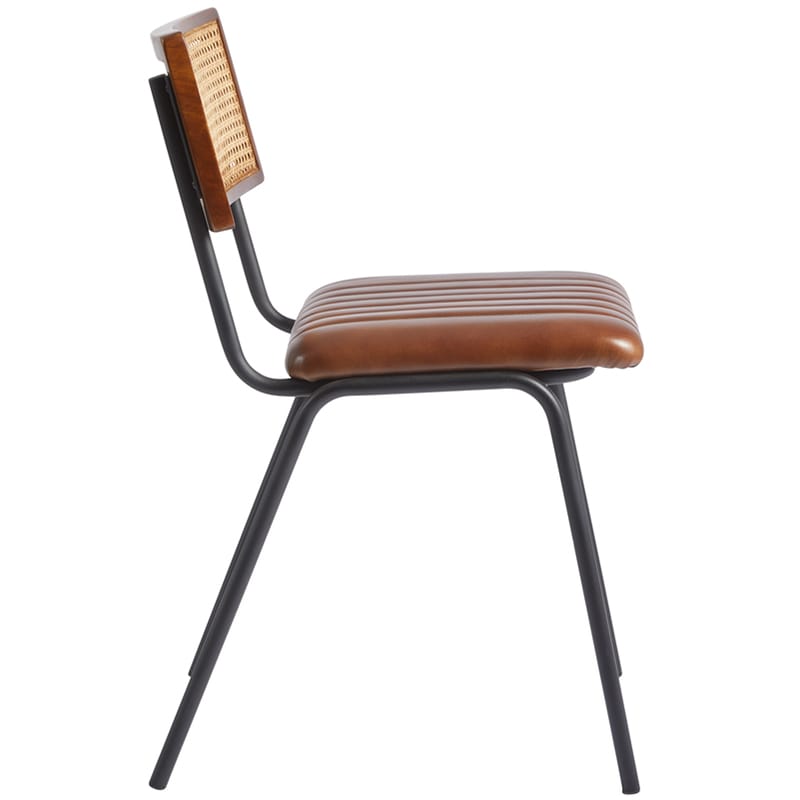 The Fleetwood Side Chair showcase a unique ribbed upholstery pattern with a stunning natural cane back rest,adding a touch of refined elegance that beautifully contrasts against the sturdy tubular metal frame. Our side chairs are not only visually stunning but designed to withstand the test of time, featuring a robust iron black frame suitable for indoor use only.
